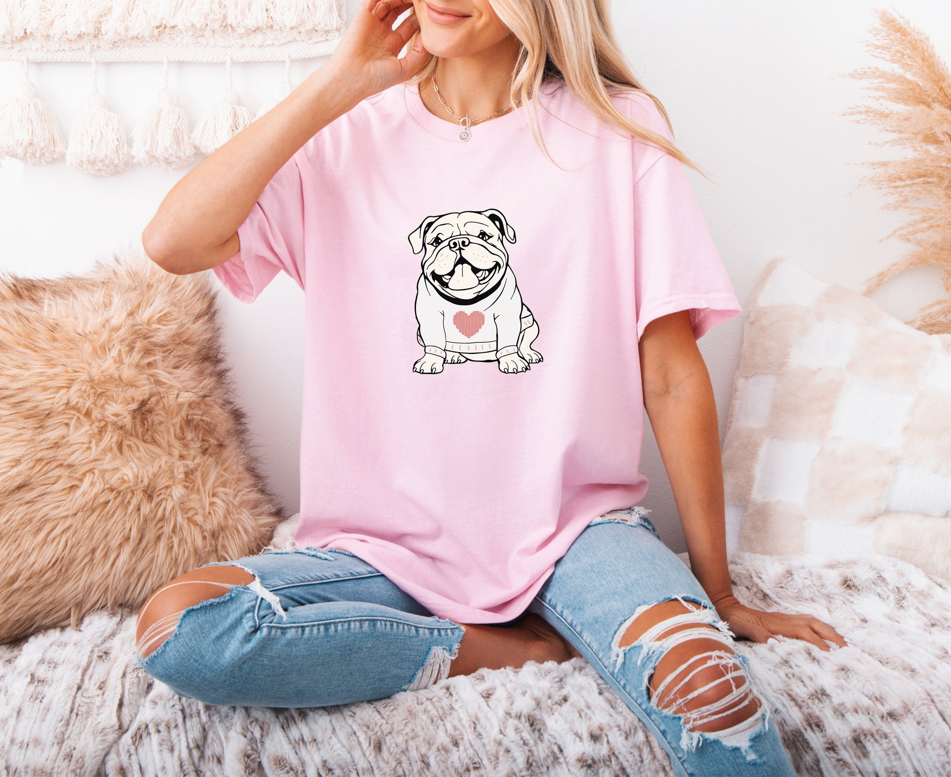 Show your Bulldog love in the cutest way! Features a Bulldog sketch design with a heart sweater detail.