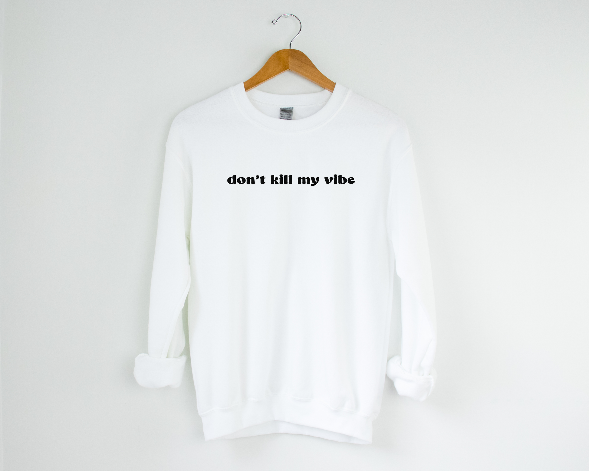 Keep the good energy flowing with our don't kill my vibe sweatshirt. A relaxed fit and soft cotton blend keeps you comfy all day.