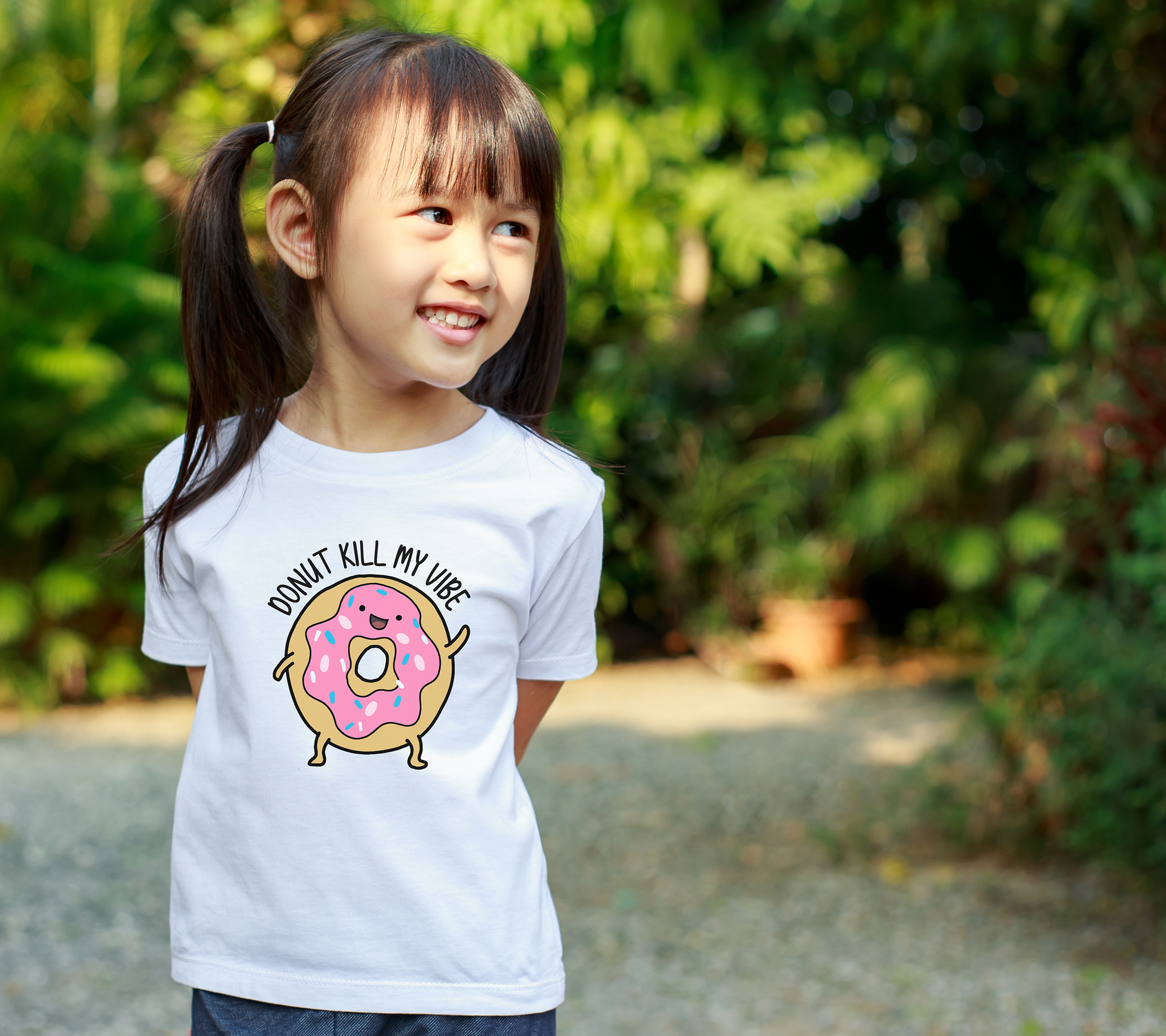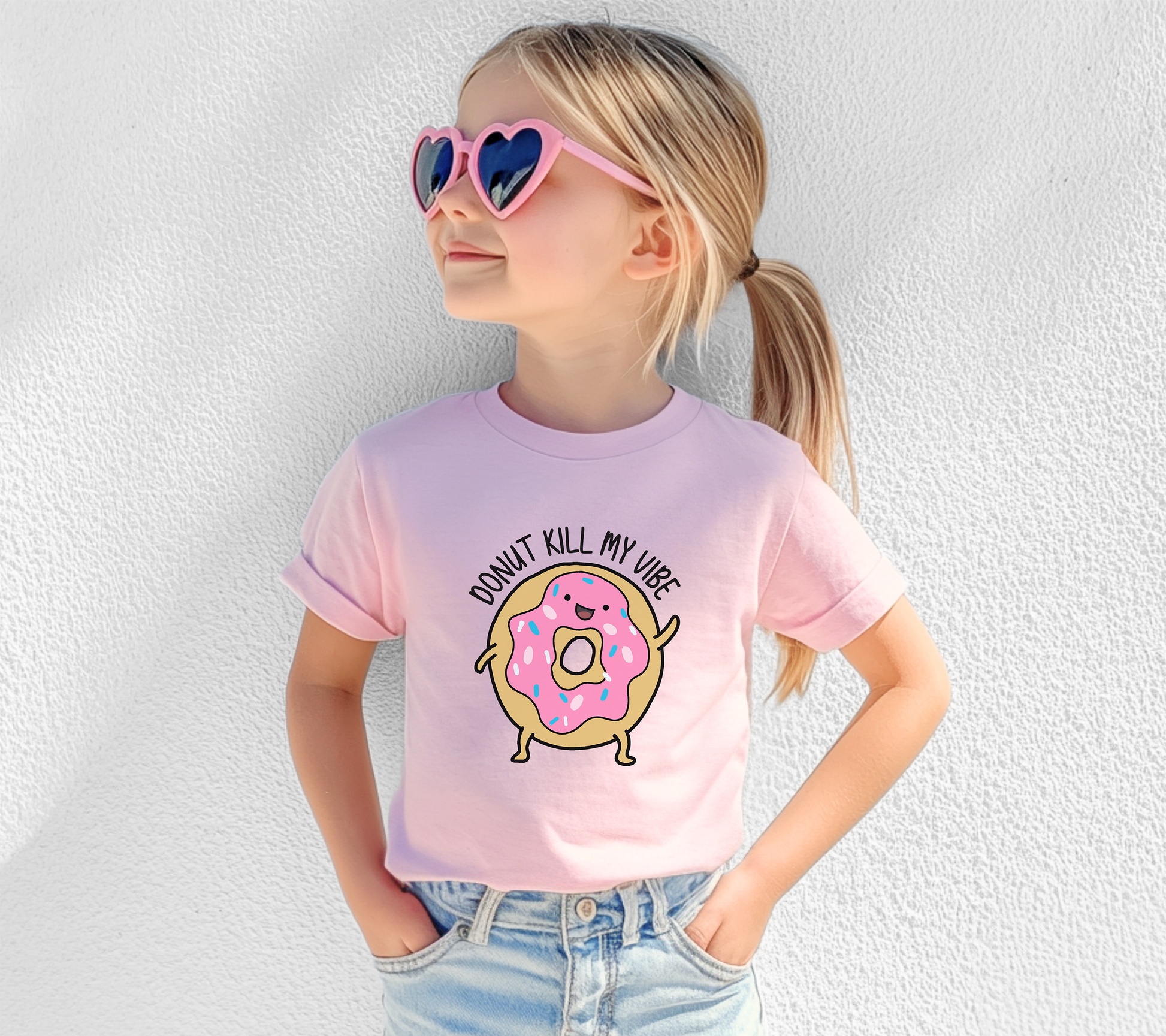 Serving up sweet vibes only! Our Donut Kill My Vibe kids tee features a cheerful donut character sure to make you smile!