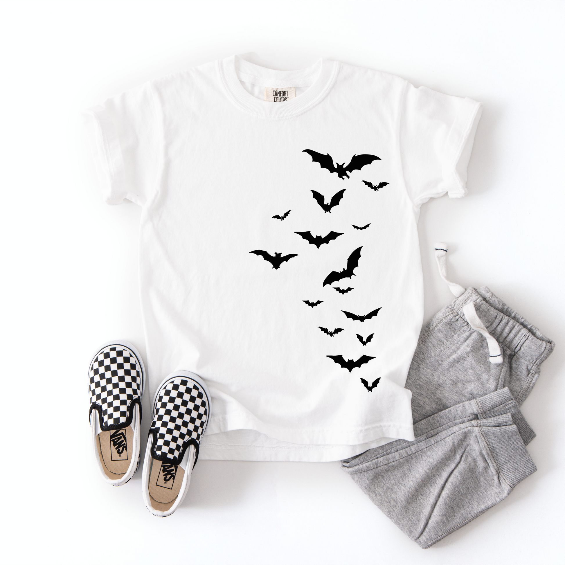 Our Flying Bats tee made just for kids is a swarm of cuteness for spooky season or all year round!