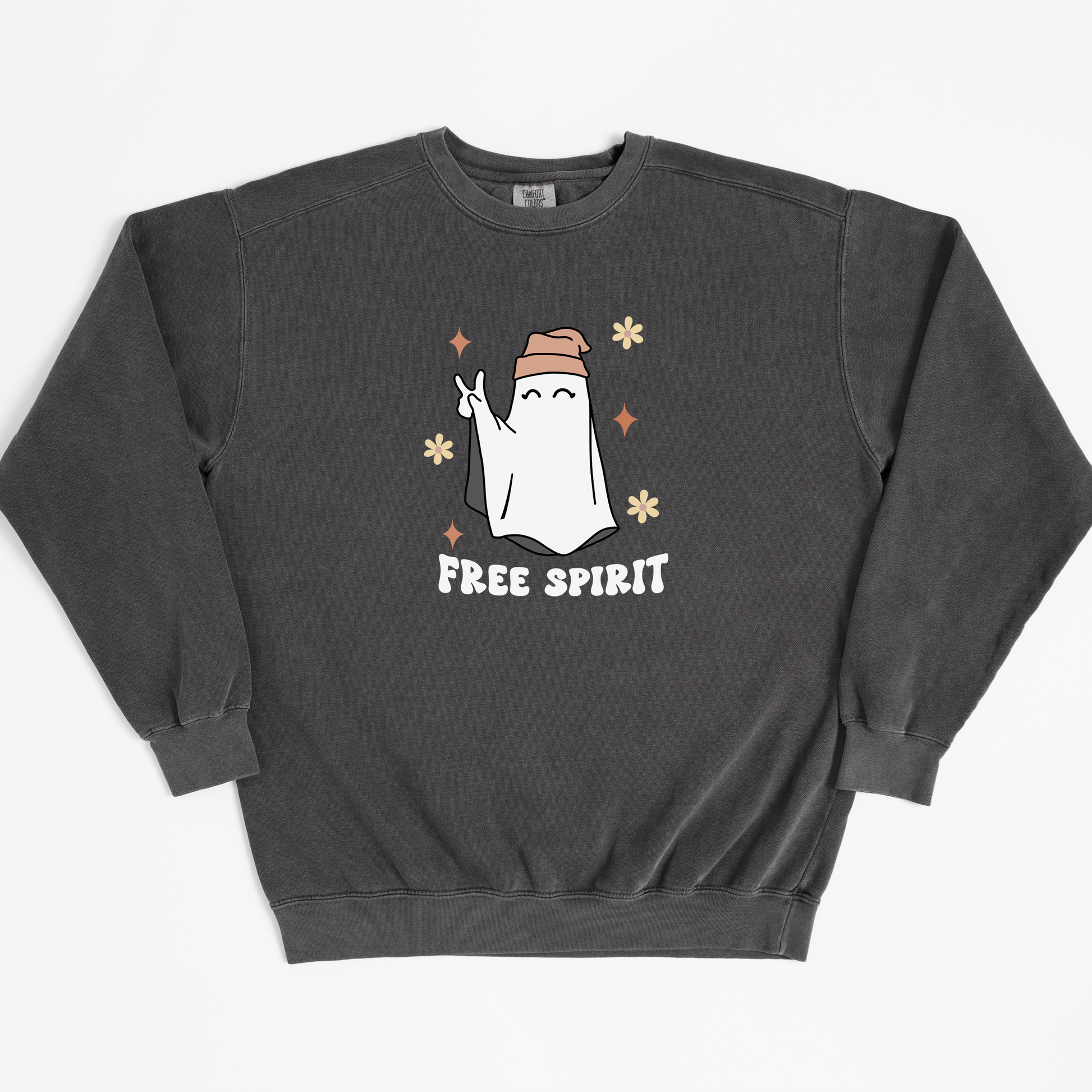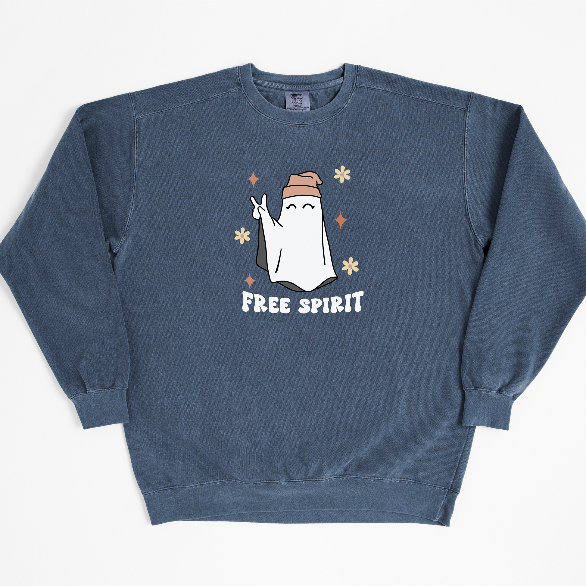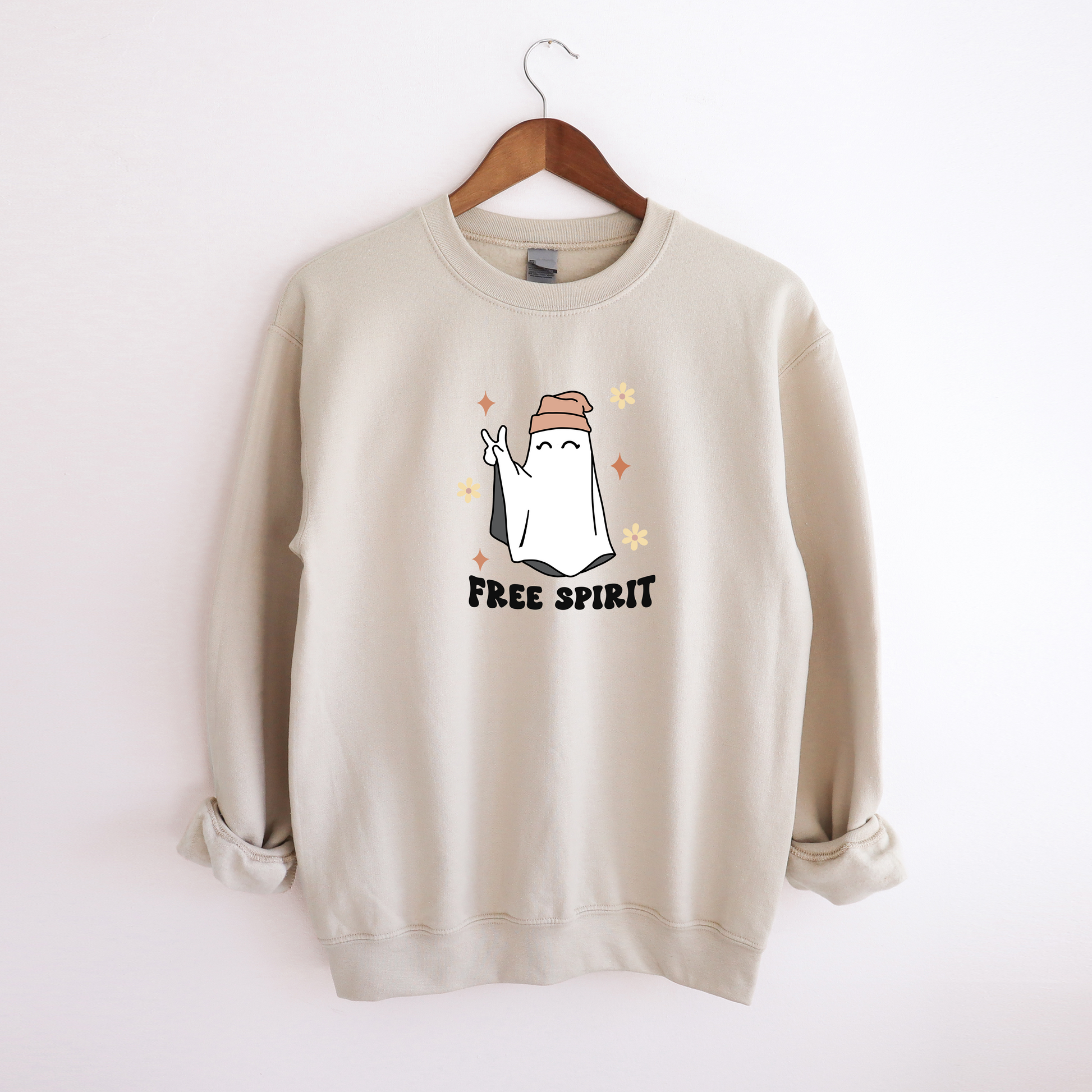 Our free spirit ghost with a touch of retro style. Super-soft, comfy, and perfect for spreading peace, love, and good vibes wherever you go. These cozy sweatshirts have a slightly oversized fit. Roomy enough for easy layering, yet stylish enough to wear on its own.