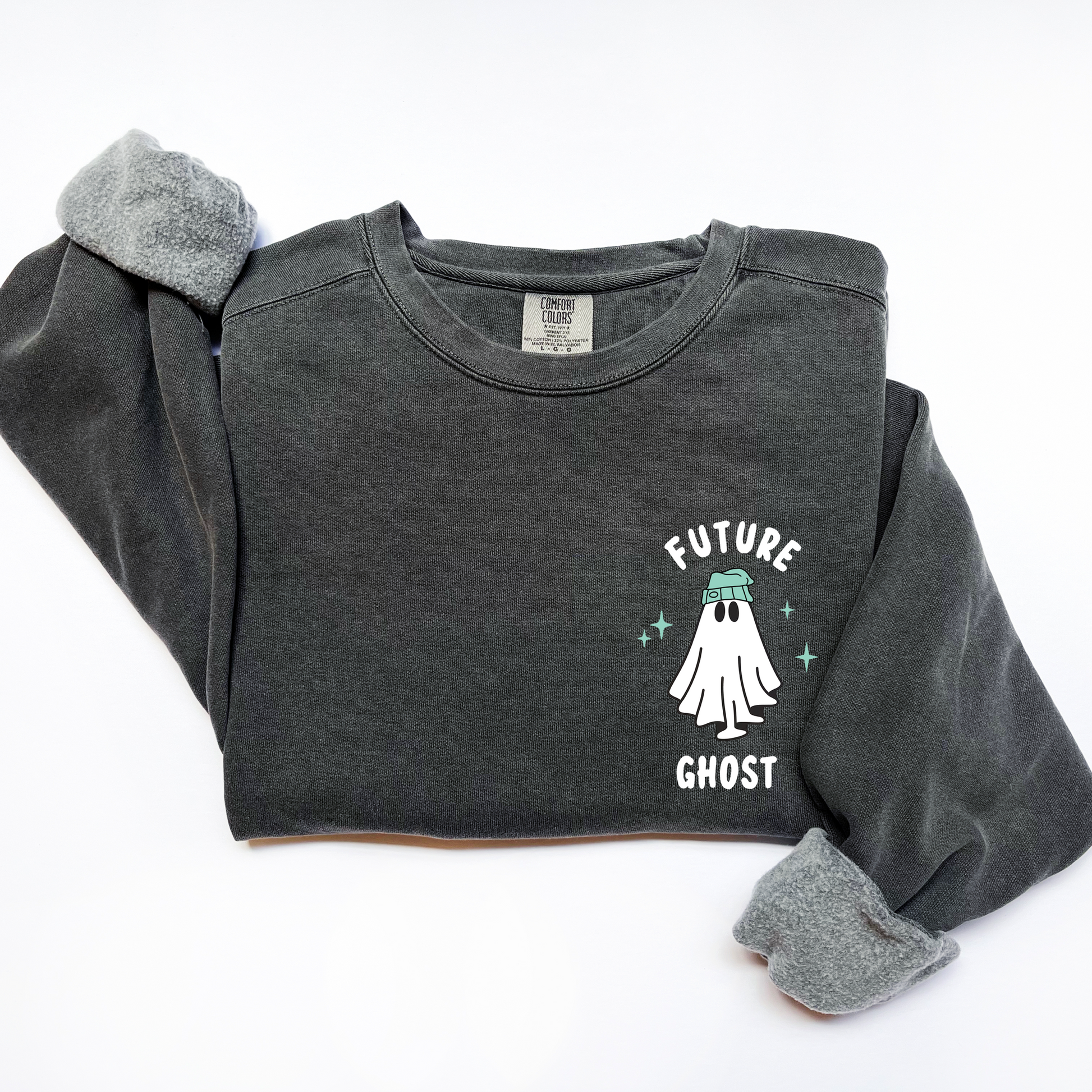 Boo-tiful things take time! Made for all the future ghosts in training while keeping you cute and comfy! These cozy sweatshirts have a slightly oversized fit. Roomy enough for easy layering, yet stylish enough to wear on its own.