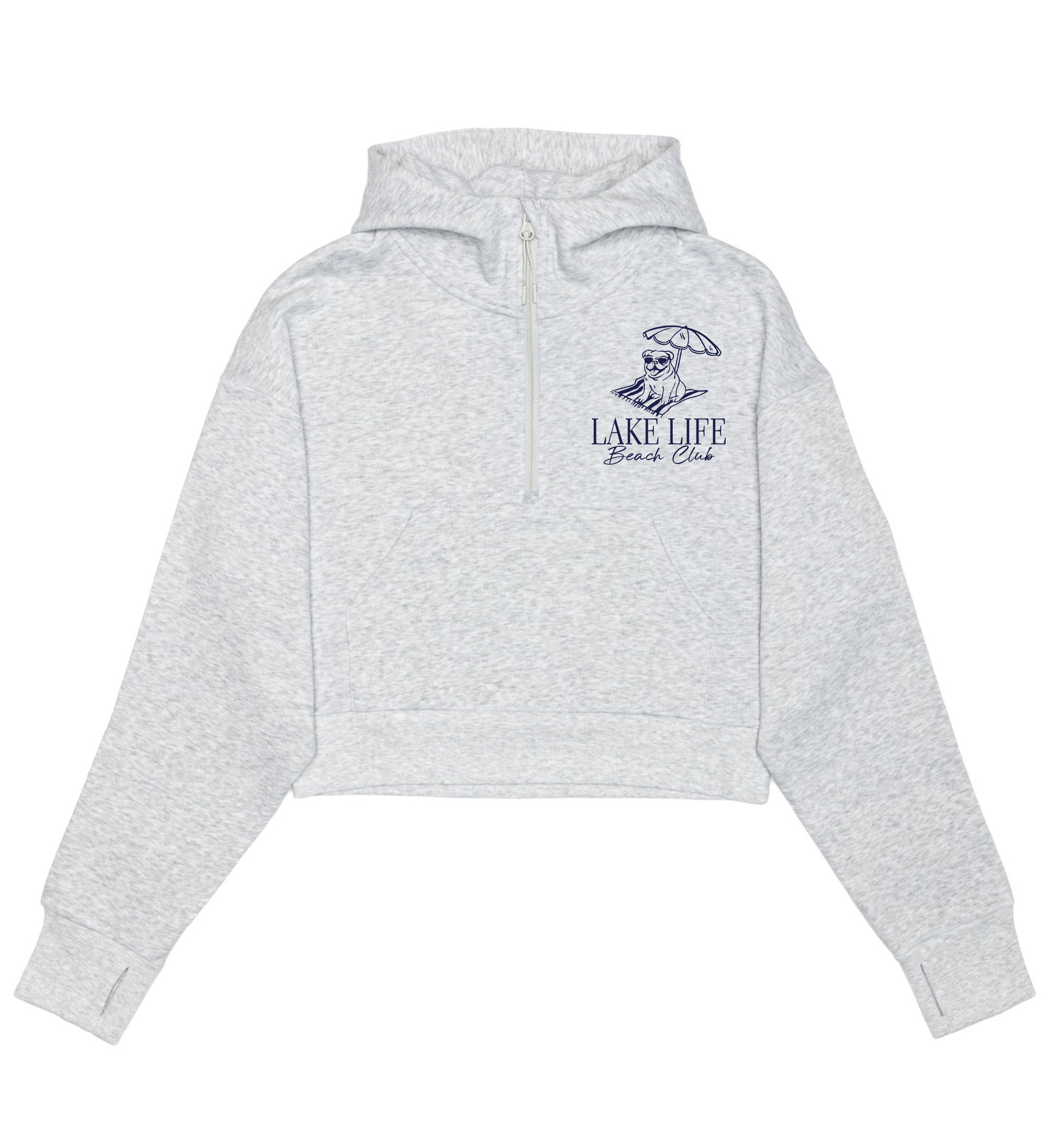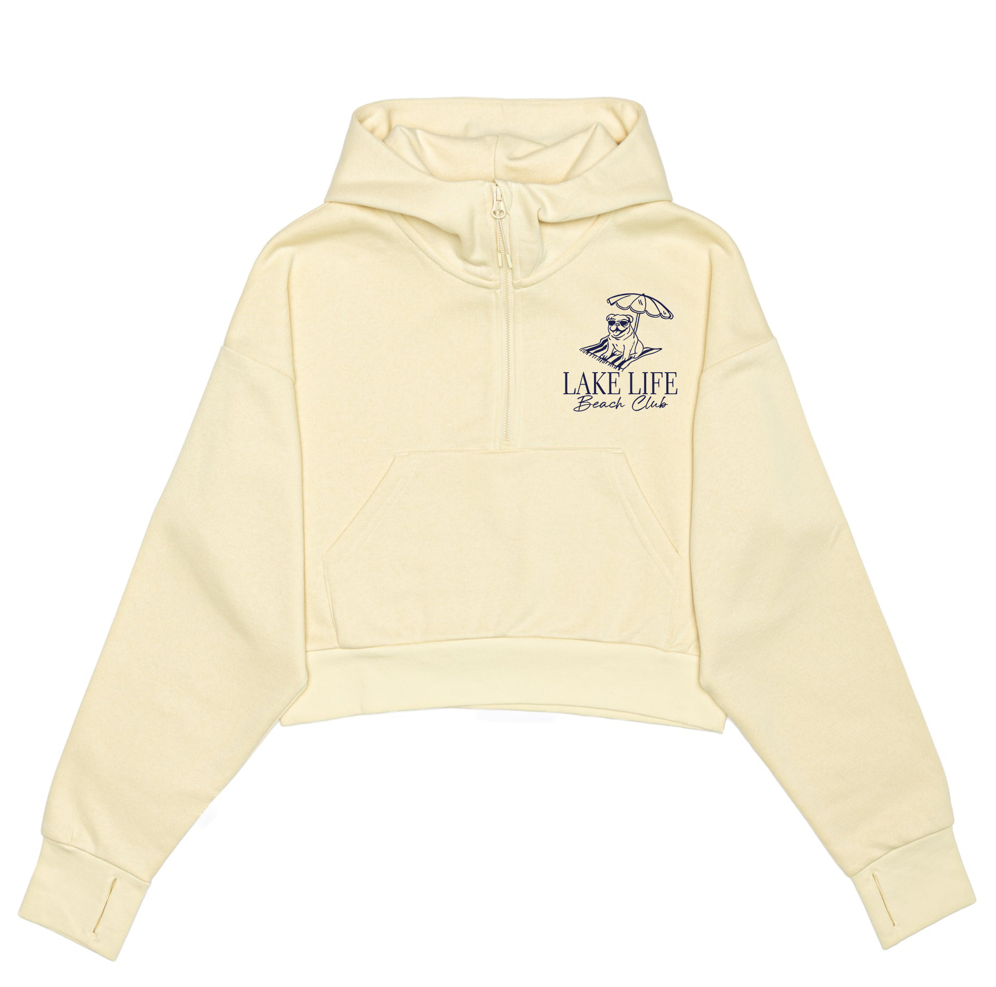 Our Like Life Beach Club 1/2 zip scuba crop hoodies are the ultimate blend of style and comfort.